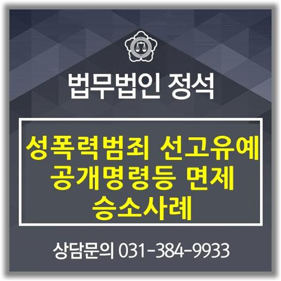 오늘은 [법무법인 정석]에서 ‘성폭력범죄 선고유예 판결-공개명령등 부수처분 면제 승소사례’를 전해드리겠습니다.
