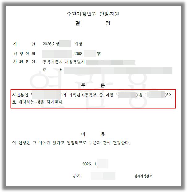 '개명 허가 결정 승소사례 - 미성년자 개명 허가'